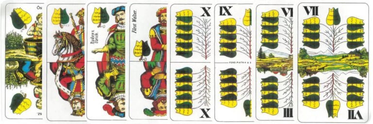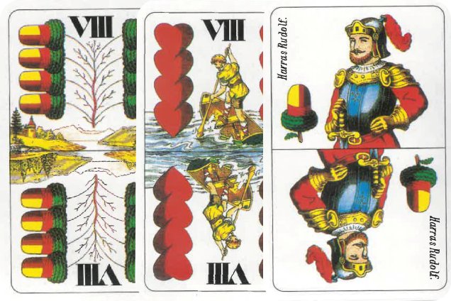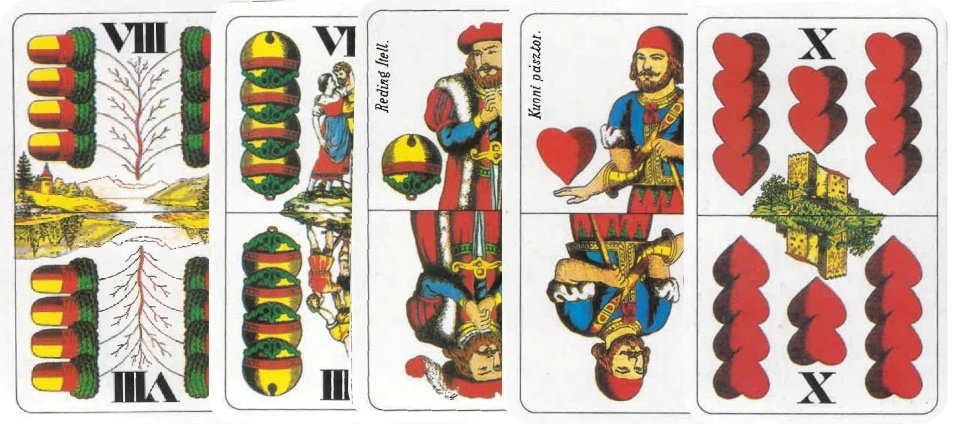 A lapok erősorrendje, csökkenőben: ász, király, felső, alsó, X, IX, VIII, VII.